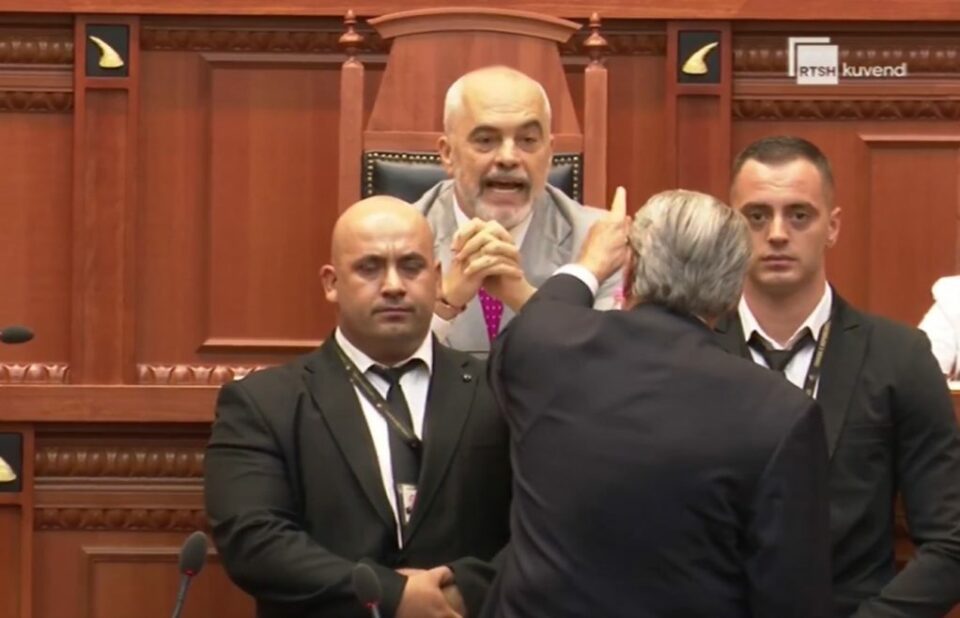 “O i pafytyrë”, dëgjohet t’i thotë Berisha-Ramës teksa shkon drejt tij, ndërkohë që ndërhyn garda.